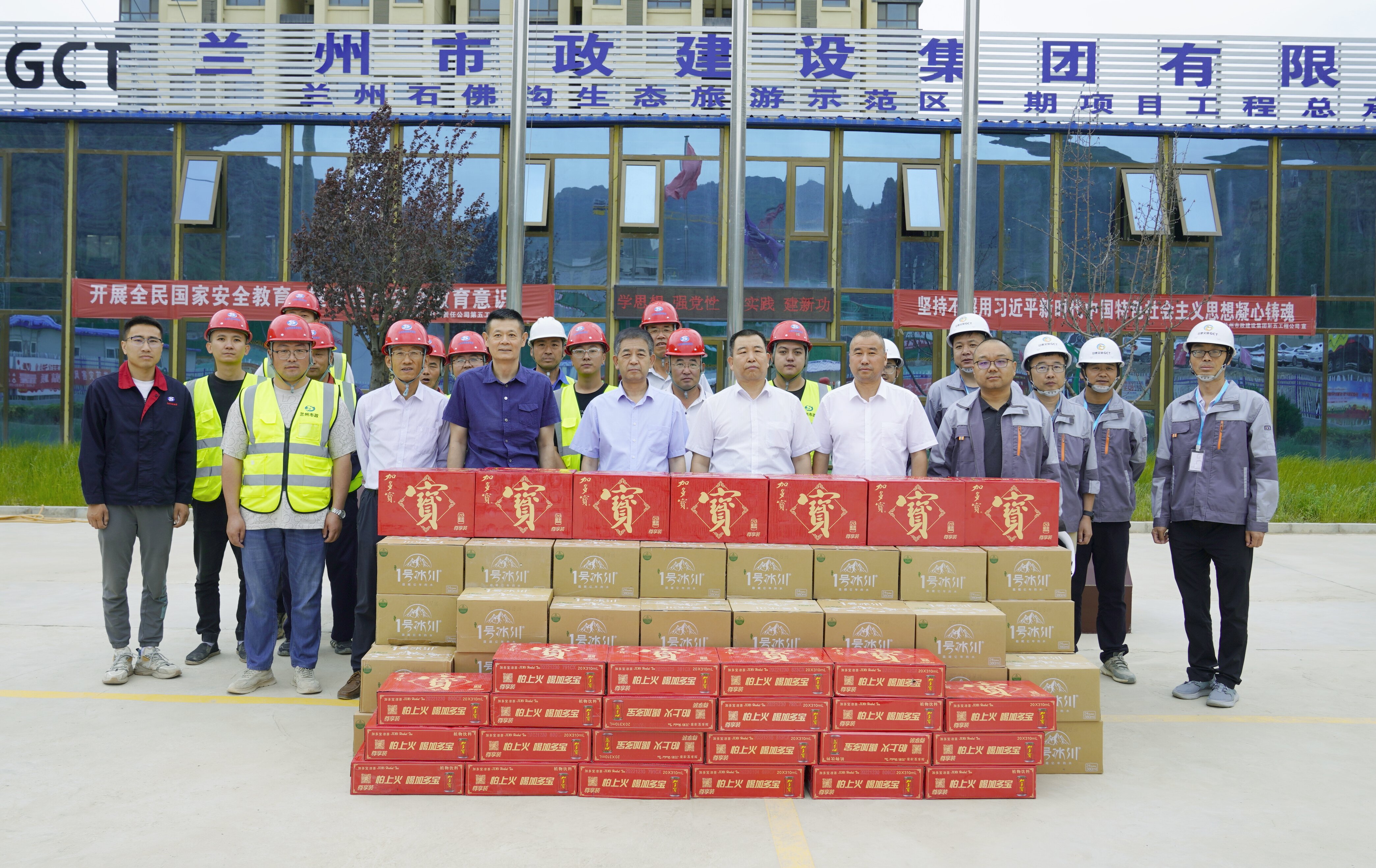 7月5日上午,甘肅文旅產(chǎn)業(yè)集團有限公司黨委副書記、工會主席王寧一行深入到公司承建的石佛溝生態(tài)旅游示范區(qū)項目部,代表集團看望慰問高溫下堅守在施工一線的廣大員工,送去礦泉水和飲料,表達(dá)了對基層員工的人文關(guān)懷。