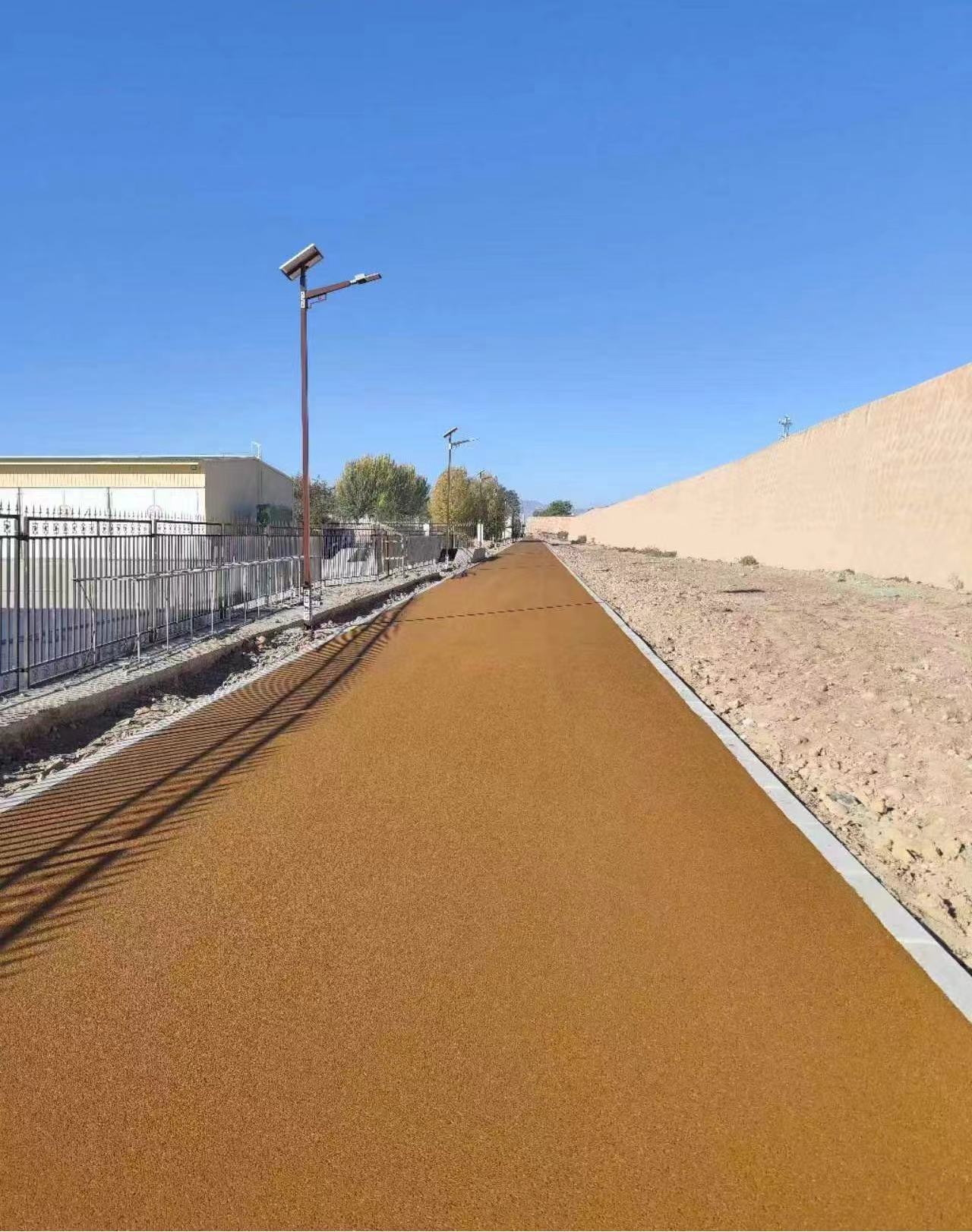 由道面工程公司參建的武威滿城環(huán)境整治工程彩色瀝青面層鋪筑工程位于武威市涼州區(qū),整條道路繞城墻內(nèi)側(cè)一周,線路全長4030m。在鋪筑過程中,項目部克服氣溫下降、工期緊張、材料運距較遠(yuǎn)等困難,精心組織,合理安排,積極與當(dāng)?shù)氐臑r青混凝土拌合站溝通協(xié)調(diào),解決了及時出料、運料的問題。派專人入駐拌合站,協(xié)同生產(chǎn),對瀝青混合料的配合比實時把關(guān),保證出料質(zhì)量?,F(xiàn)場施工人員每天早晨七點到位,各司其職,項目管理人員全程把控每一道工序?qū)?yīng)的每一個技術(shù)標(biāo)準(zhǔn),確保施工安全、工程質(zhì)量受控。目前,彩色瀝青面層鋪筑工作已經(jīng)完成,已成為滿城一道靚麗的風(fēng)景線。