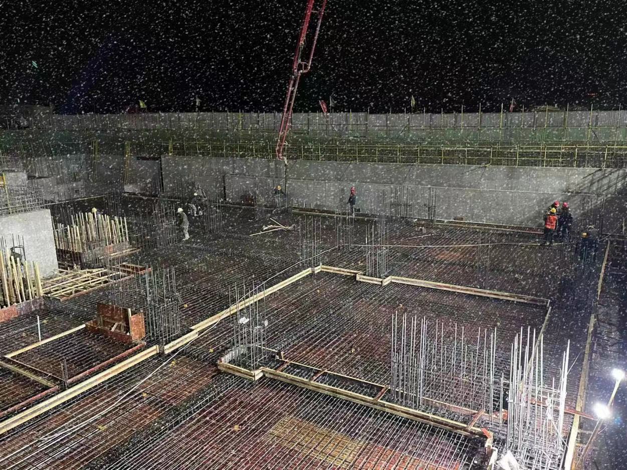 由第一工程公司承建的涼州區(qū)社會養(yǎng)老院建設(shè)項目已進入沖刺四季度的關(guān)鍵期。進入10月以來,受強冷空氣影響,涼州區(qū)迎來了持續(xù)的強降雪天氣。該項目部結(jié)合當(dāng)?shù)靥鞖鉅顩r,提前優(yōu)化施工方案,加強現(xiàn)場巡回檢查頻次,仔細(xì)排查安全隱患,在做好人員防寒保暖的同時,加快項目施工進度;現(xiàn)場施工人員頂風(fēng)雪、戰(zhàn)低溫,鼓足干勁,攻堅克難,掀起冬季施工大干高潮。截至目前,1#安養(yǎng)樓已完成筏板基礎(chǔ)澆筑,卷材防水鋪設(shè)和保護層的施工,以及隔震層鋼板的安裝,隔震層梁、板、柱、墻混凝土澆筑,并完成支座安裝;2#安養(yǎng)樓完成防水鋪設(shè)和保護層施工,完成筏板基礎(chǔ)鋼筋綁扎50%工作量。