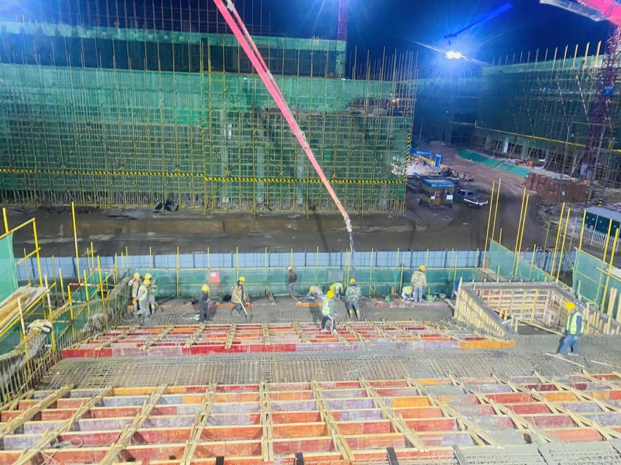 涼州區(qū)職業(yè)中等專業(yè)學(xué)校5號實訓(xùn)樓建設(shè)項目總面積9059.2平方米,計劃周期12個月,2024年7月交付使用。項目建設(shè)初期,由于施工場地內(nèi)高壓電塔遷改進程緩慢,導(dǎo)致新建項目開工較晚。為確保5號實訓(xùn)樓建設(shè)項目按期完工,項目部提前籌劃、科學(xué)安排,倒排工期,現(xiàn)場管理人員及施工人員加班加點,趕進度,把前期耽誤的時間搶回來。截至目前,5號實訓(xùn)樓建設(shè)項目已在一個月內(nèi)完成基礎(chǔ)與主體混凝土澆筑2800m3,構(gòu)造底板及剪力墻SBS防水卷材2500m2,使用鋼筋原材580噸,從構(gòu)造底板到主體三層結(jié)構(gòu)的施工任務(wù),為建設(shè)項目按期交付打下了堅實基礎(chǔ)。