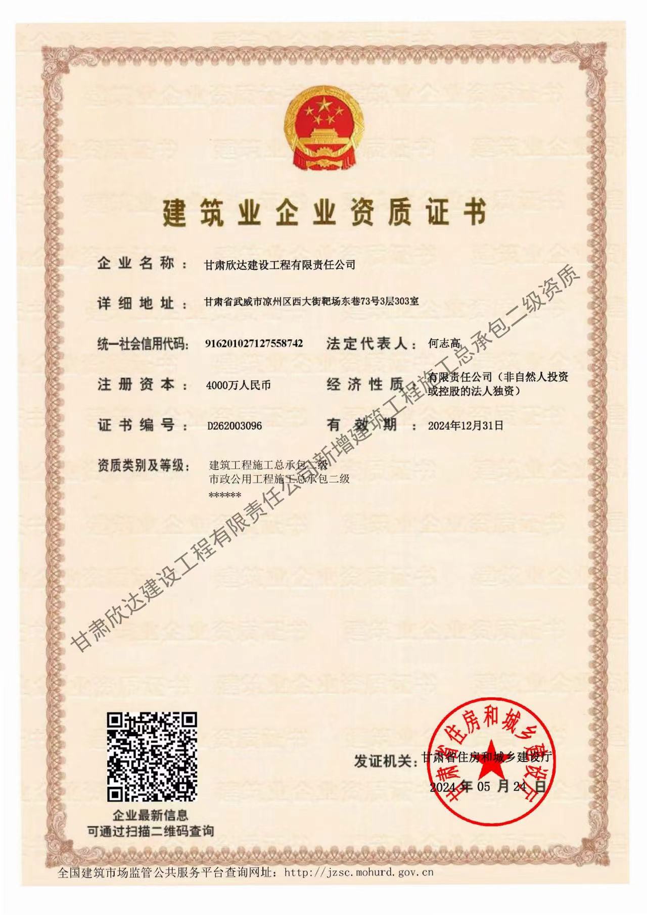 5月28日,經(jīng)甘肅省住房和城鄉(xiāng)建設(shè)廳核準,蘭州市政建設(shè)集團子公司甘肅欣達建設(shè)工程有限責(zé)任公司成功新增“建筑工程施工總承包二級”資質(zhì)。